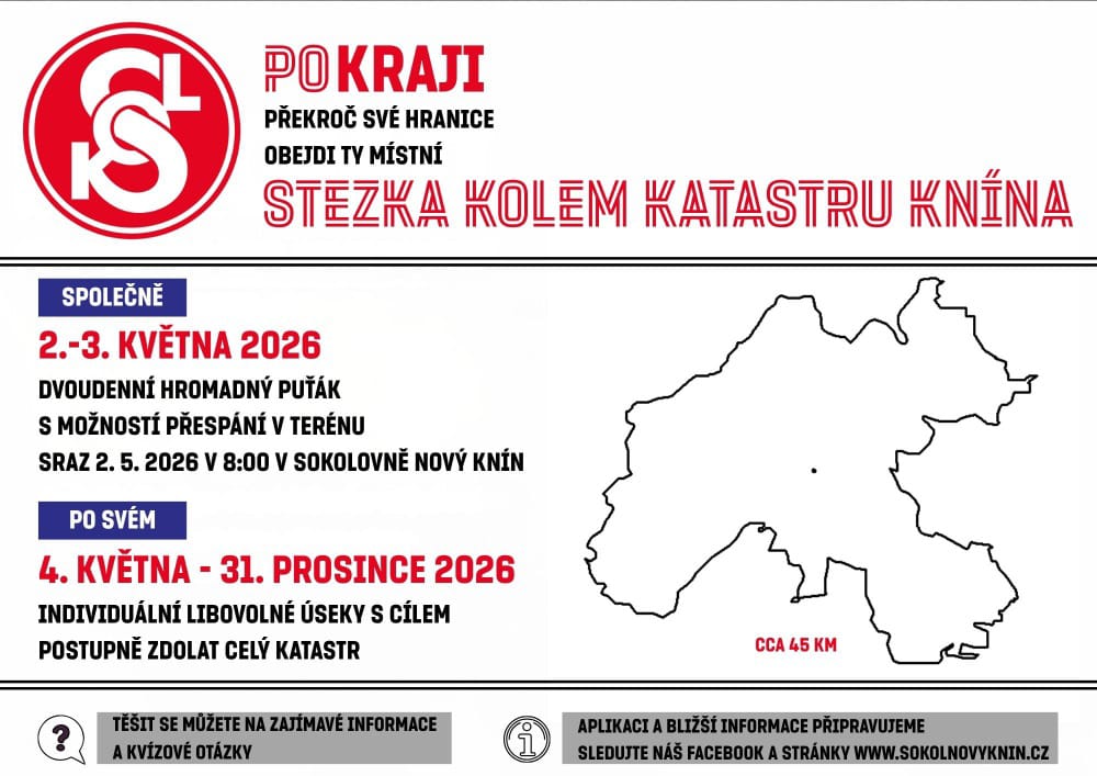 Letos tomu bude  840 let od první písemné zmínky o Novém Kníně a není to zmínka ledajaká. V roce 1186 bylo právě v našem městě podepsáno trvalé připojení Čech a Moravy. Kudy přesně tehdy vedla hranice Nového Knína už se asi nedovíme, ale  s námi si můžete  projít hranice  současné. Připravili jsme pro vás krásnou aplikaci, která všechny vaše kroky zaznamená a pokud do konce roku 2026 stihnete hranice Nového Knína obejít, máme pro vás i zaslouženou odměnu.